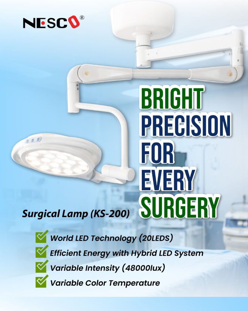 Dengan NESCO Surgical Lamp, pencahayaan jadi lebih terang, fokus, dan stabil untuk membantu tim medis bekerja lebih presisi.