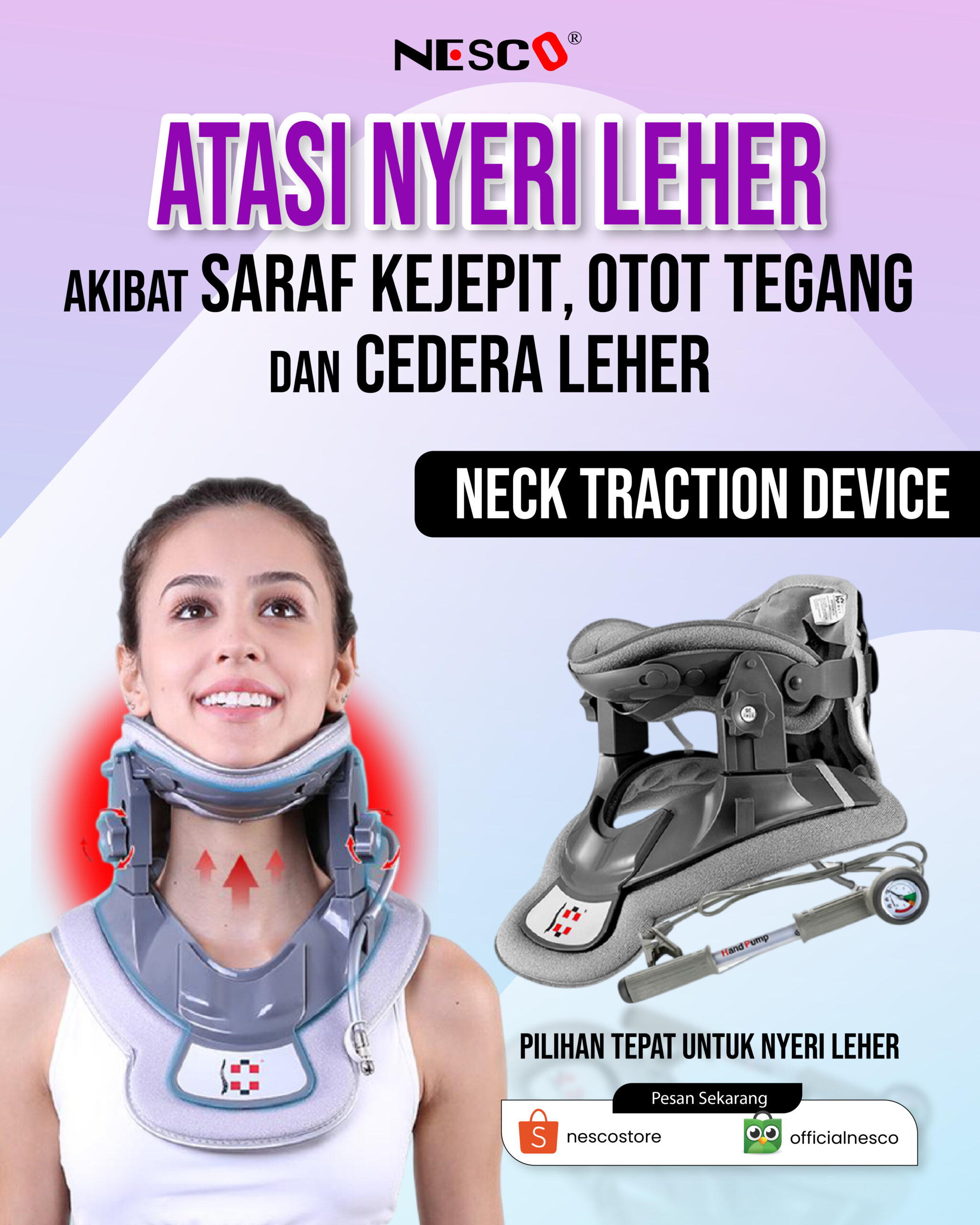 NYERI LEHER TAK KUNJUNG HILANG?Atasi sekarang juga dengan Neck Traction Device dari NESCO! Dirancang khusus untuk membantu meredakan: Saraf kejepitOtot leher tegangCedera leher akibat postur atau kecelakaan Membantu meregangkan tulang leher dengan...