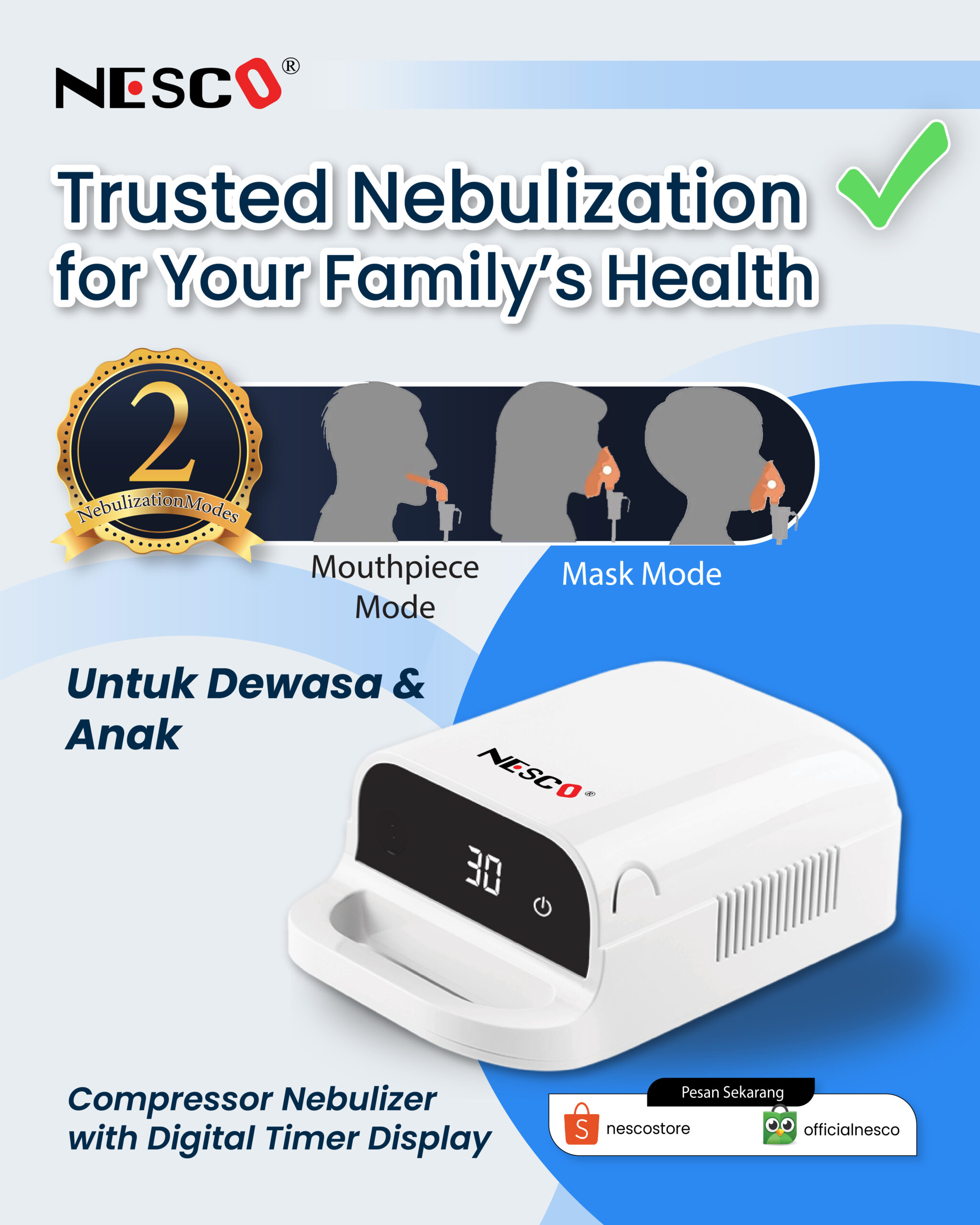 Bernapas Lebih Nyaman, Terapi Lebih Terukur Nesco Nebulizer with Digital Timer Display hadir untuk memberikan pengalaman terapi pernapasan yang lebih praktis dan efisien.Dengan fitur display waktu digital, Anda bisa memantau durasi terapi...