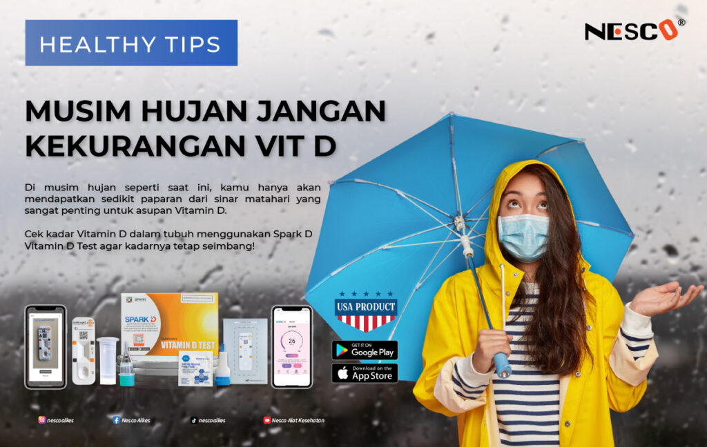 Sebelum terlambat, selalu kontrol kadar Vitamin D dalam tubuh kamu dengan menggunakan Spark D Vitamin D Test yang dapat dibeli di Nesco Alat Kesehatan.